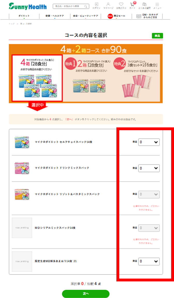 マイクロダイエット購入(カート投入)の流れは以下の通りです。