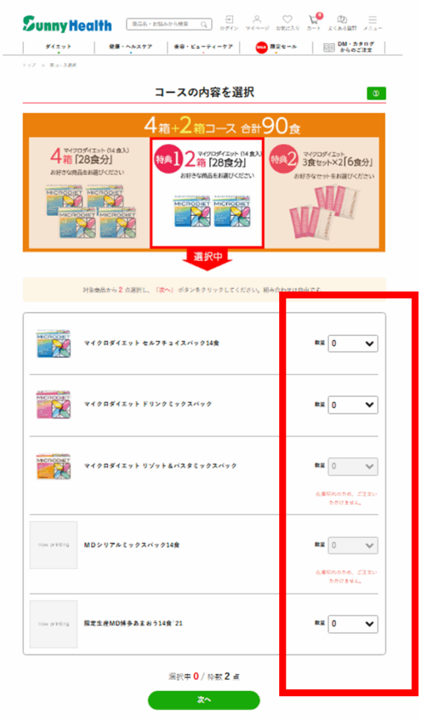 2. 【特典】マイクロダイエット(14食入)を選択する