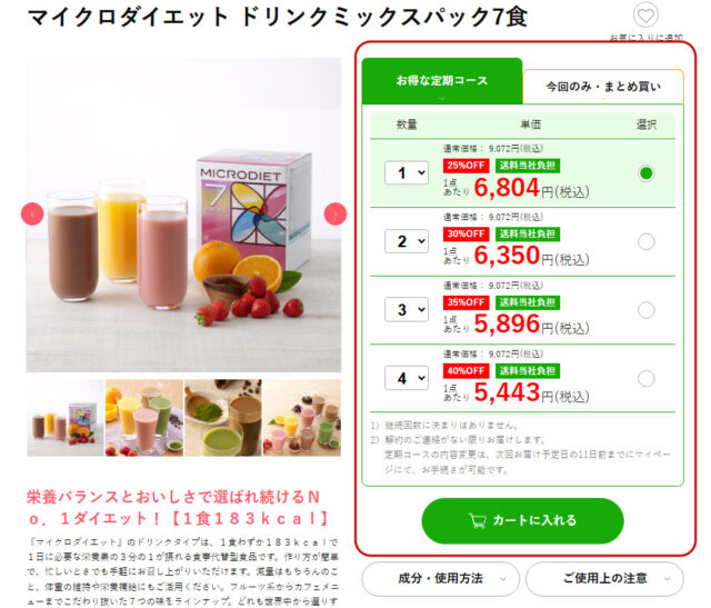 6.添付品を選択する(マイクロダイエットの場合)
