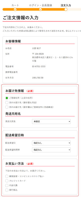 4.お届け先・お支払い方法を選択、お届け日時を指定する