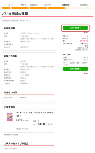 ・確認画面で内容を確認の上、「注文を確定する」をクリックしてください。